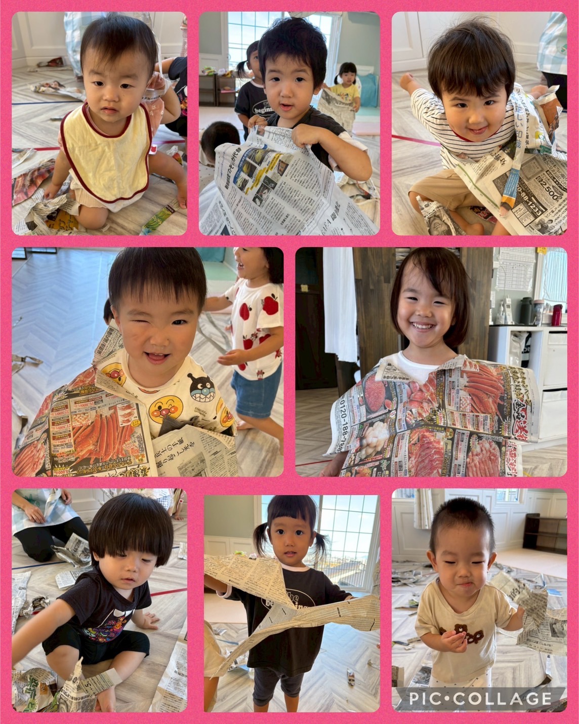 新聞紙📰をお洋服にみたてていたお友だちもいましたよ🤗