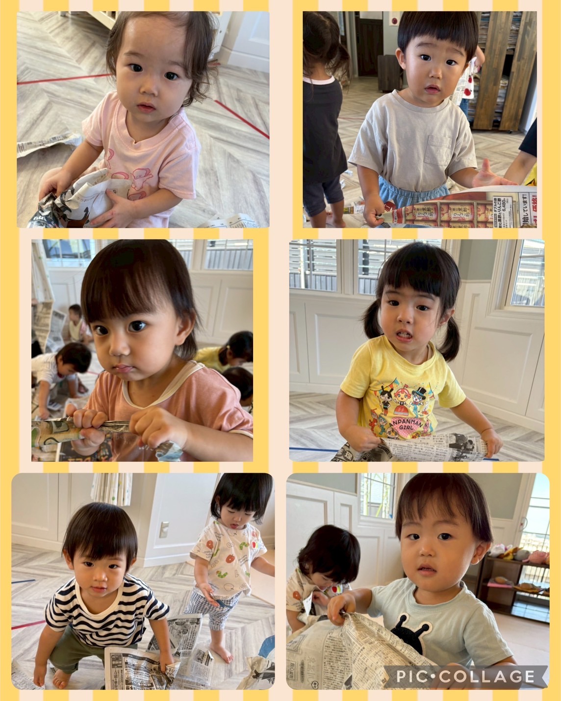 新聞紙📰をダイナミックにバリバリと破ってみたり、先生と丸くしてボールを作ってみたりして楽しみました🤗