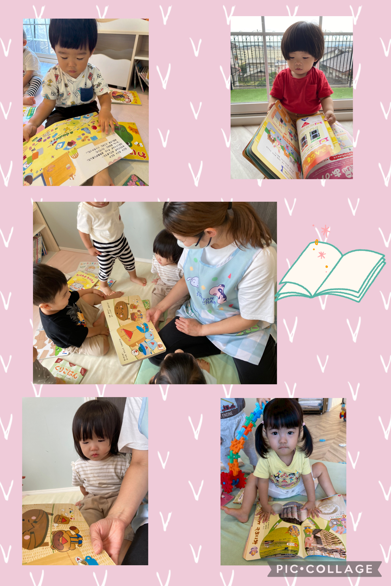 絵本📚コーナーでは、それぞれ好きな絵本を手に取り、ページをめくってみていますよ☺️