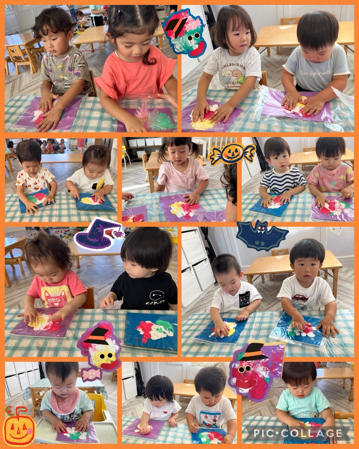 ジップロックに入れた、絵の具🎨を手🖐️で広げましたよ☺️