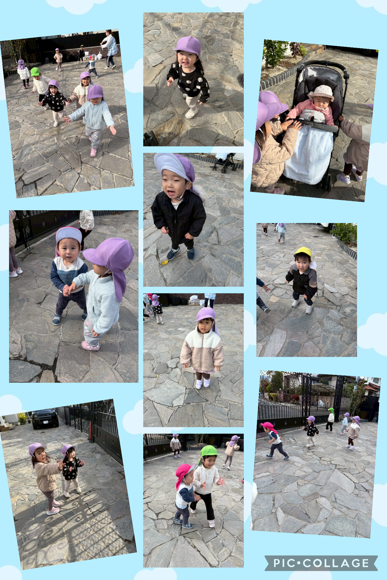 戸外遊びでは、元気にかけっこ🏃♀️したり、落ち葉🍂を手に取ったりして遊びました✨