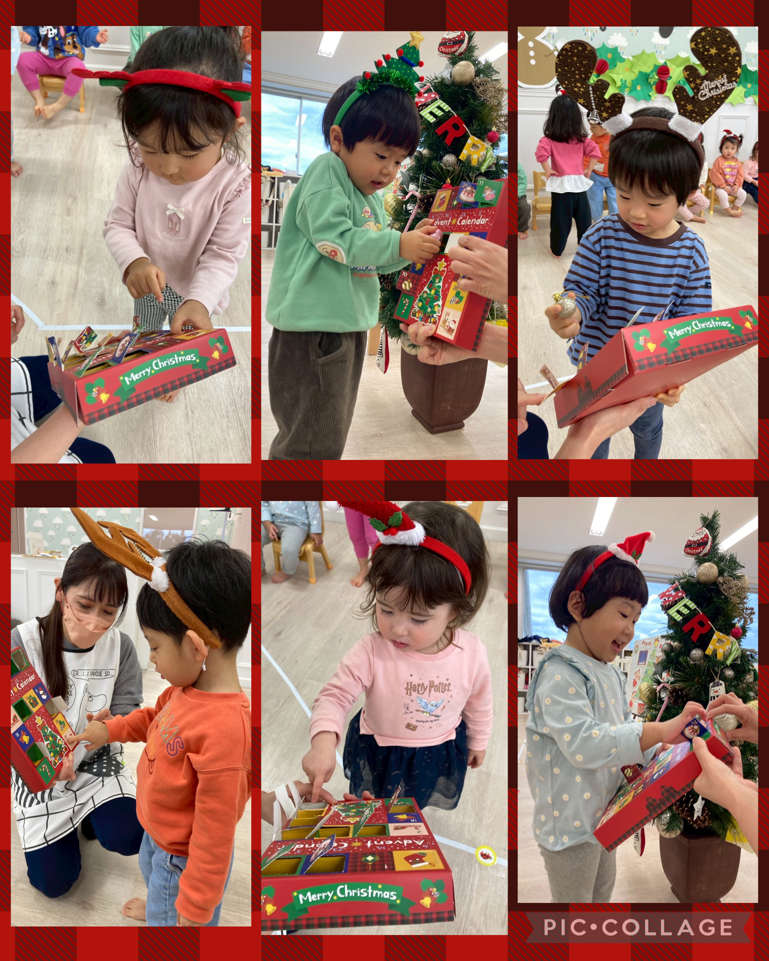 パカっと窓が開いて、出てきたキラキラのオーナメントを見て、ニッコニコの子ども達😆✨✨
