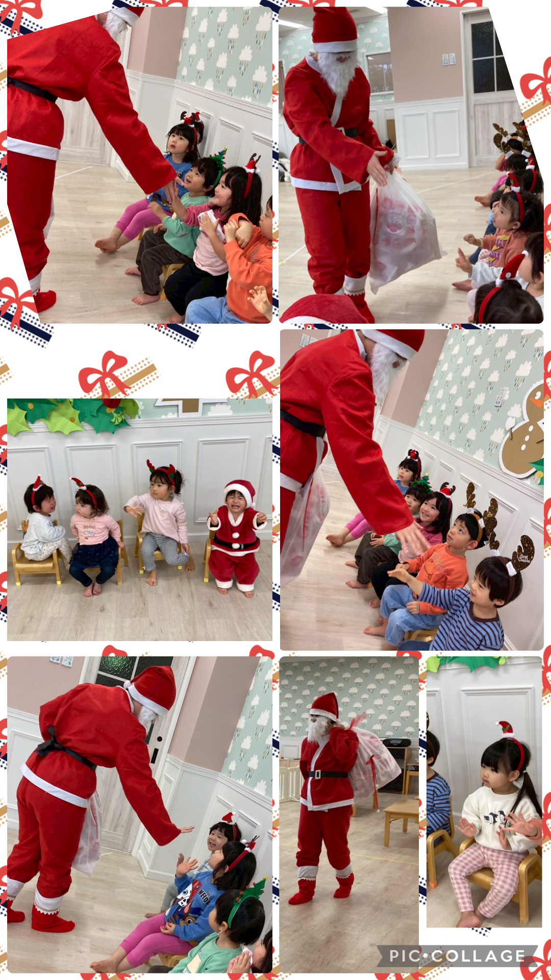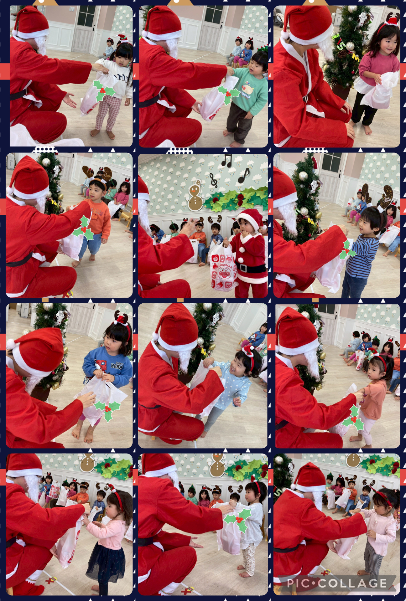 サンタさんからプレゼントを恐る恐るもらう子もいれば、じーっと顔を見ながらもらう子もいたりと🎅🏻…