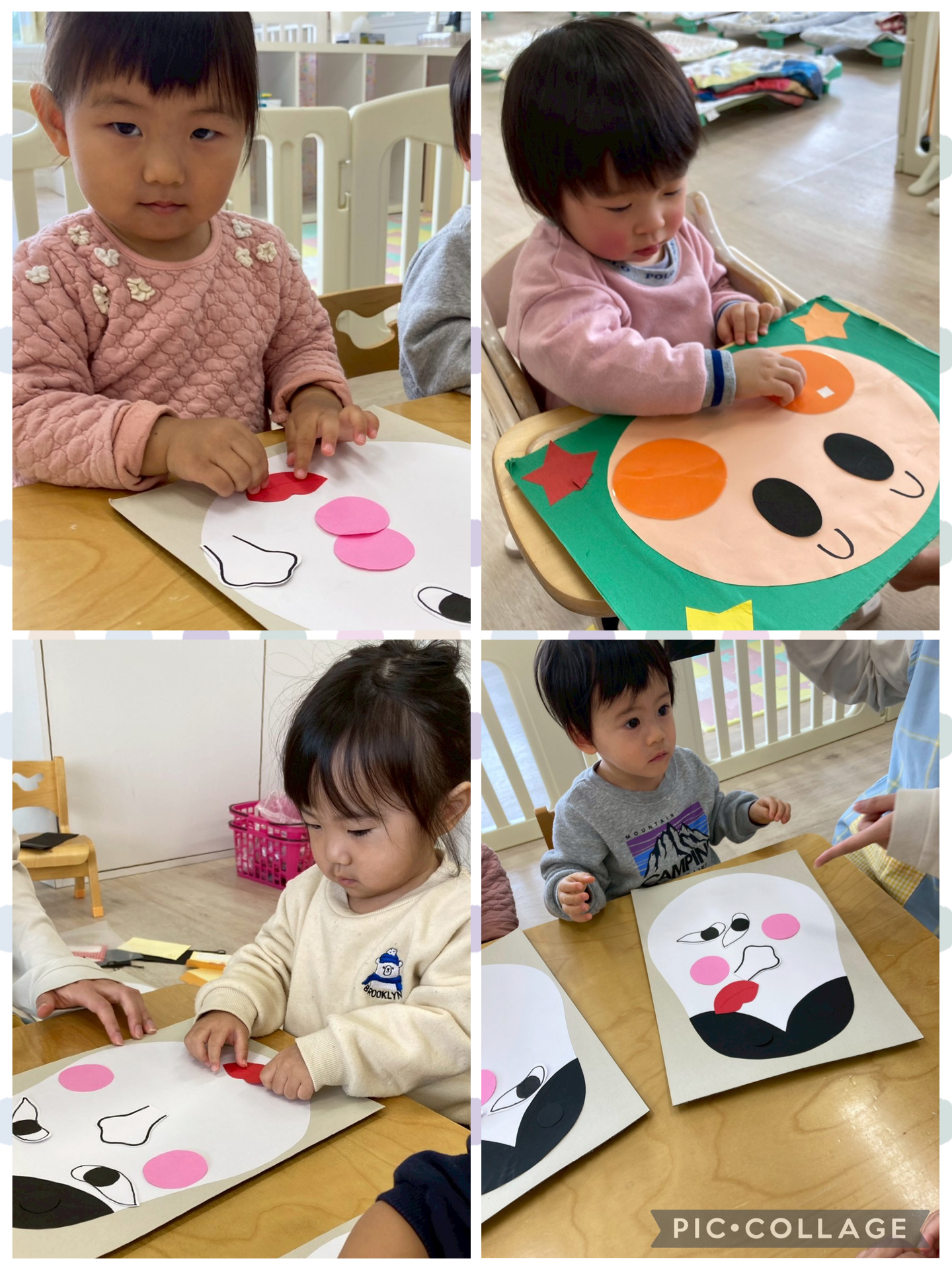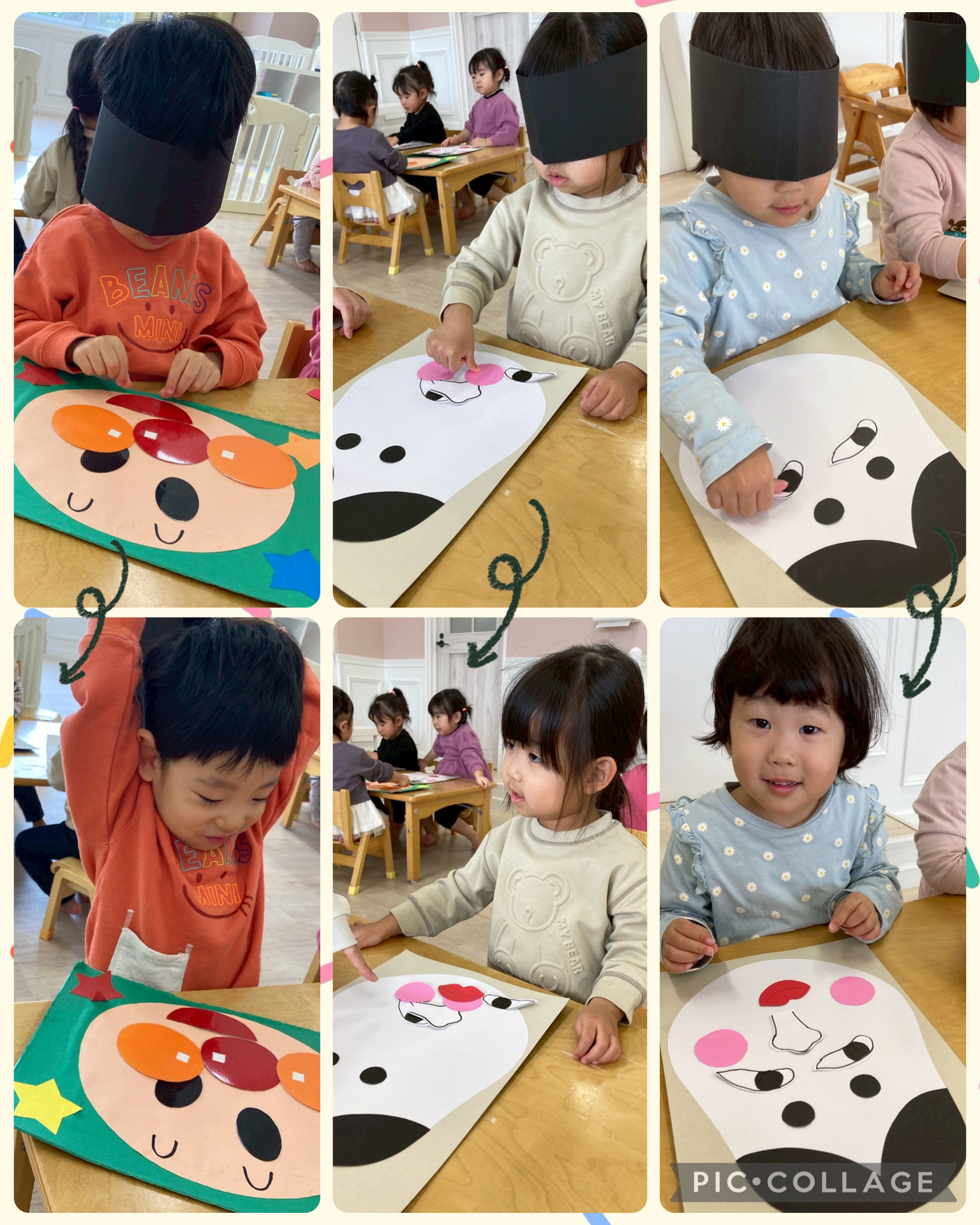 2歳児さんは、目を隠して福笑いに挑戦👍
