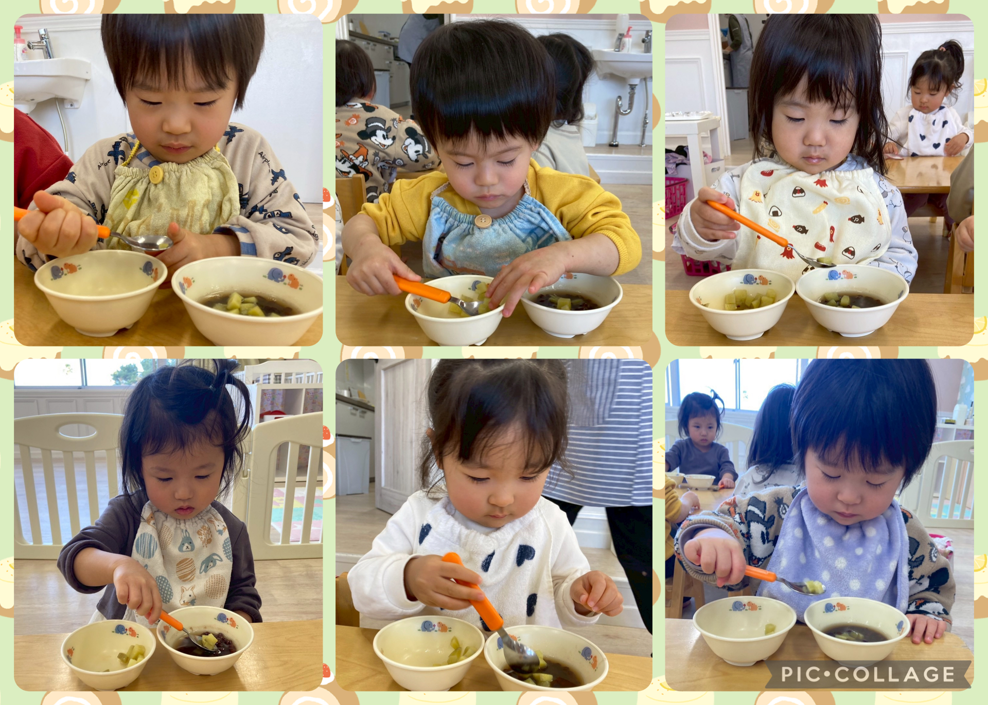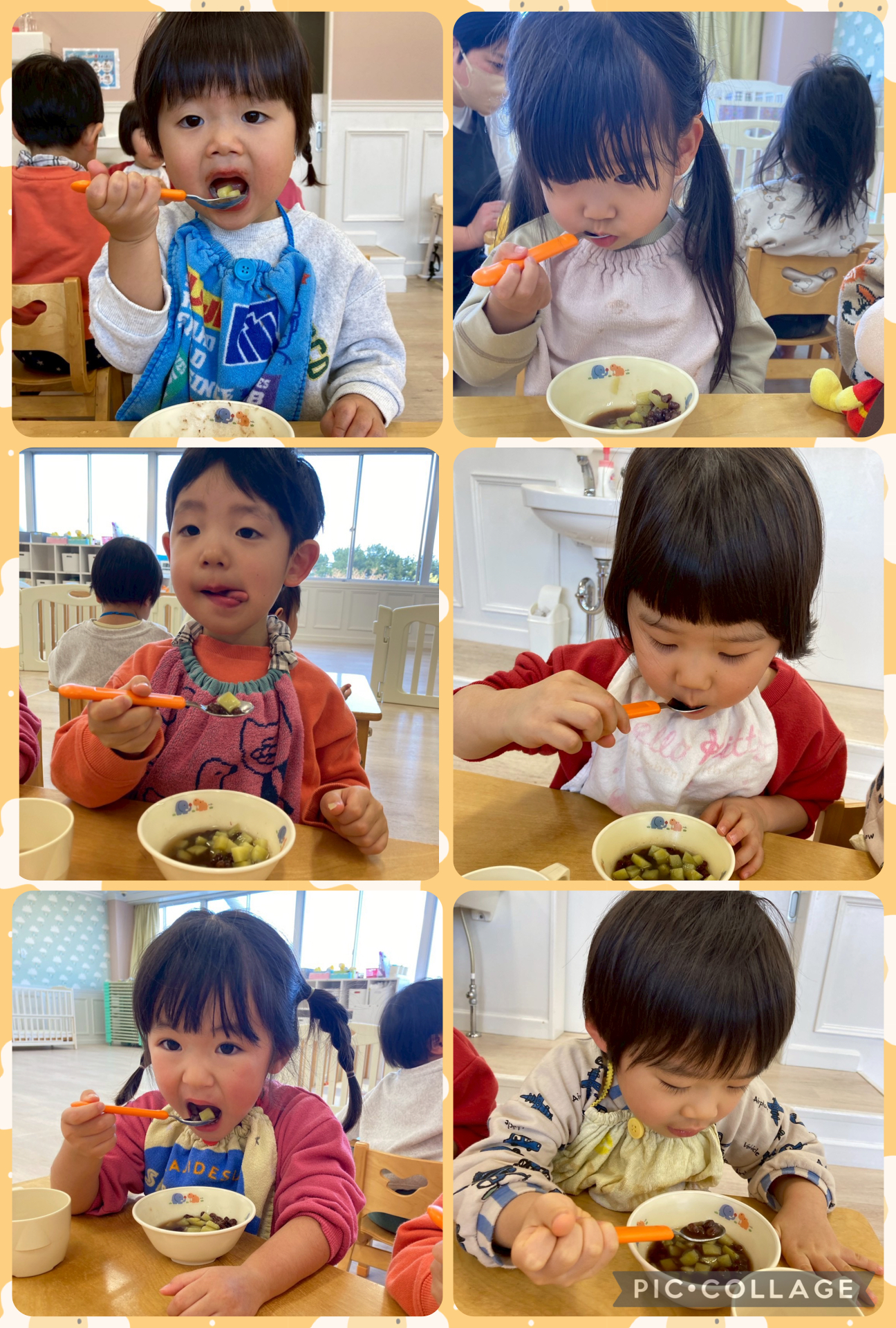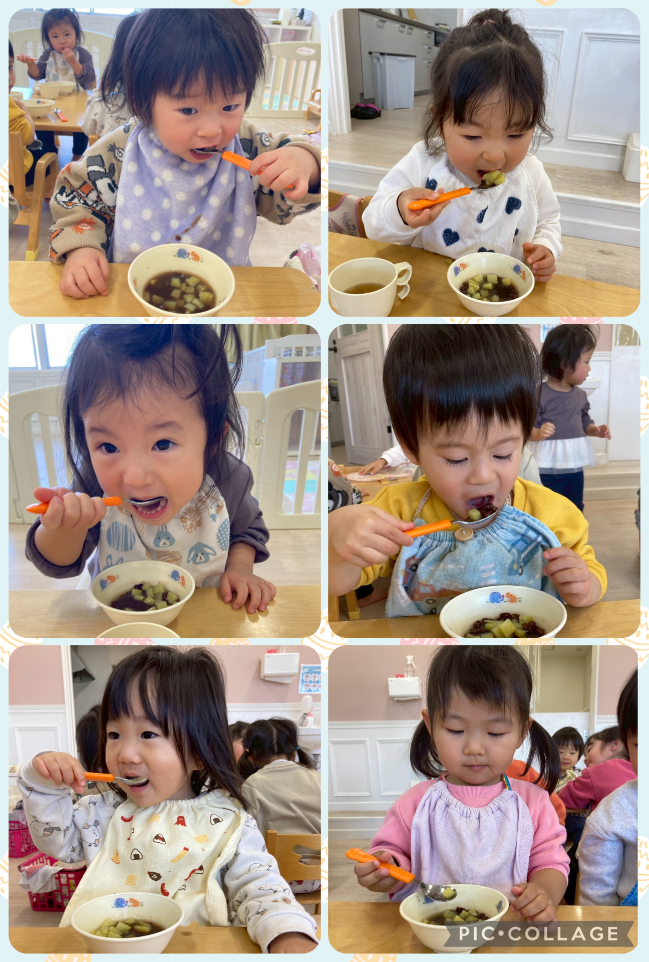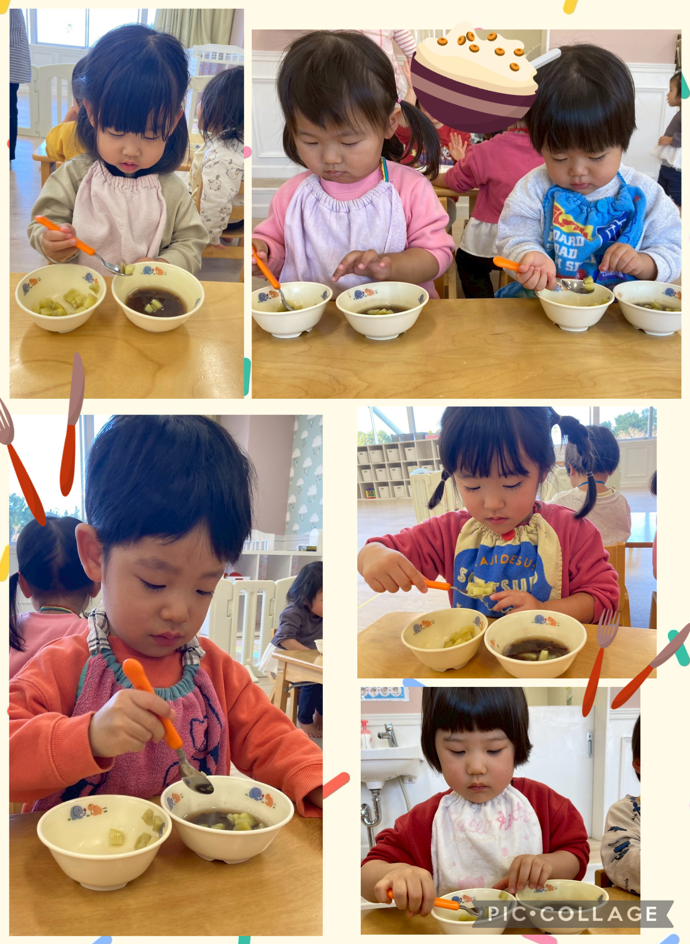 自分で作った芋ぜんざいは、美味しかった様子でぱくぱくと大きなお口で食べていた子ども達😋