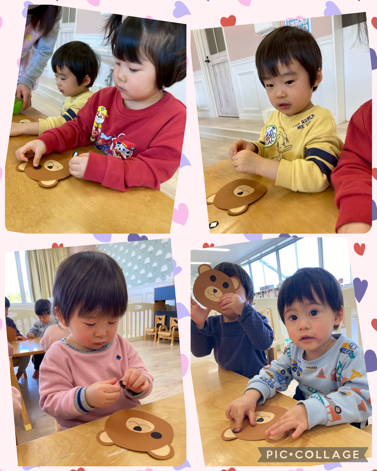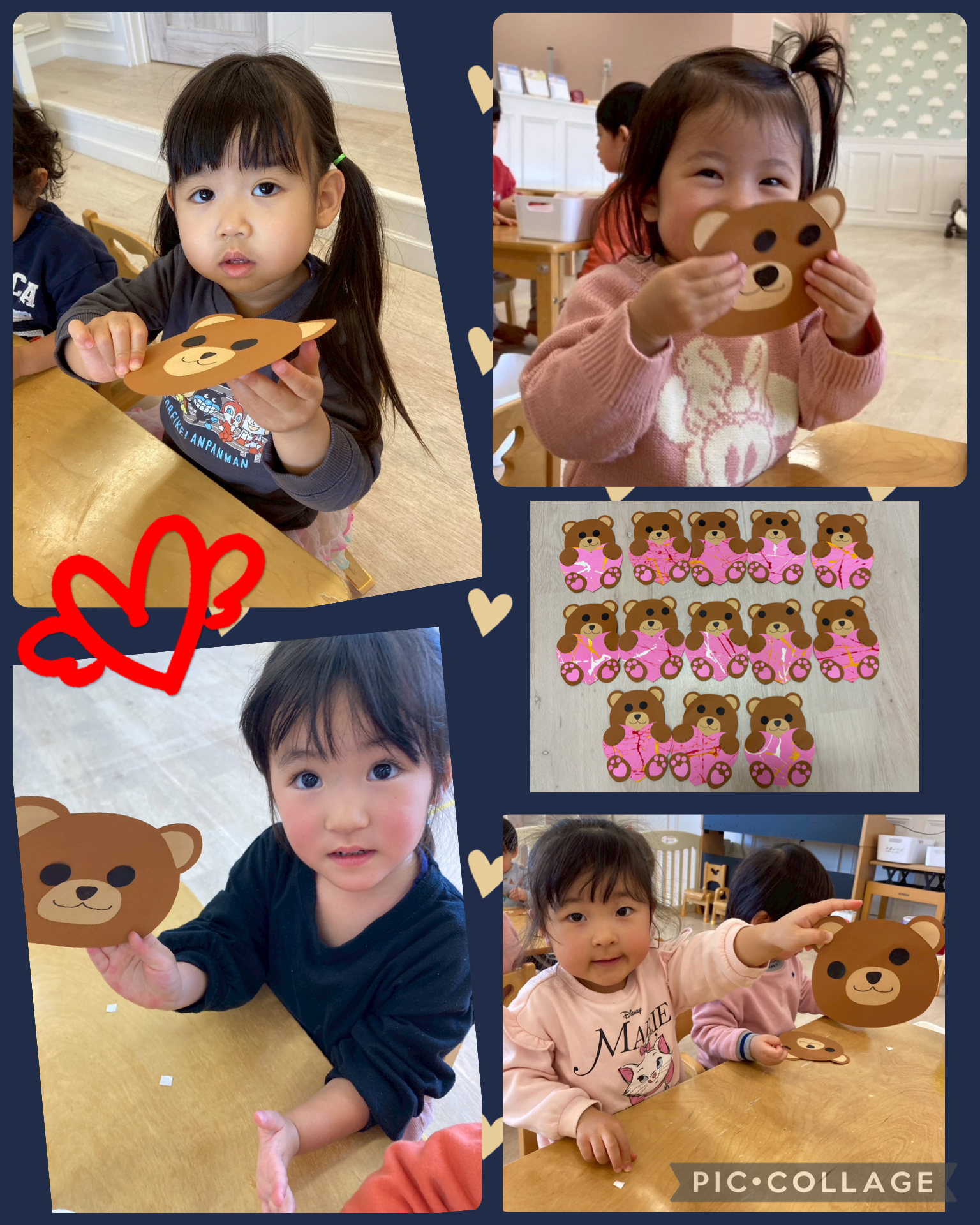 「せんせーい、できた🐻❣️」と言って、ニコニコ笑顔で見せてくれました😄
