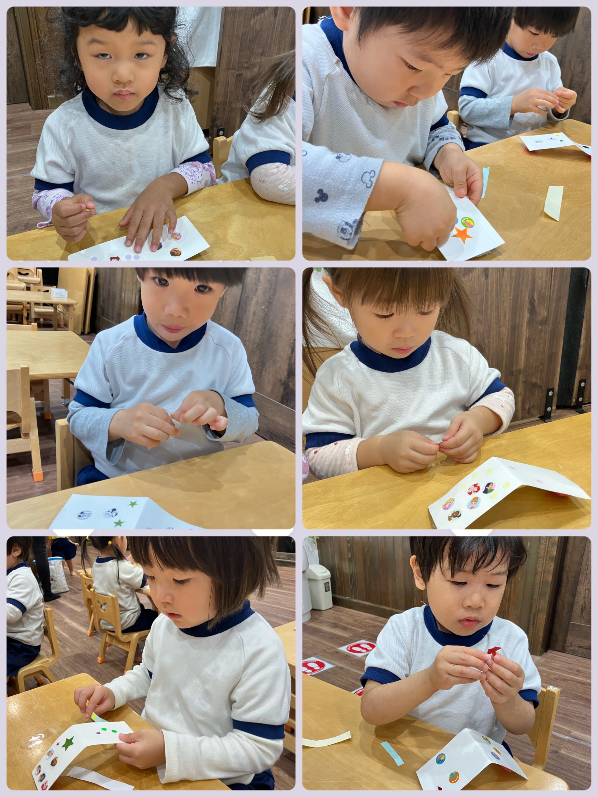 かわいいシールでデコレーションして、オリジナルのカスタネットが完成⭐️