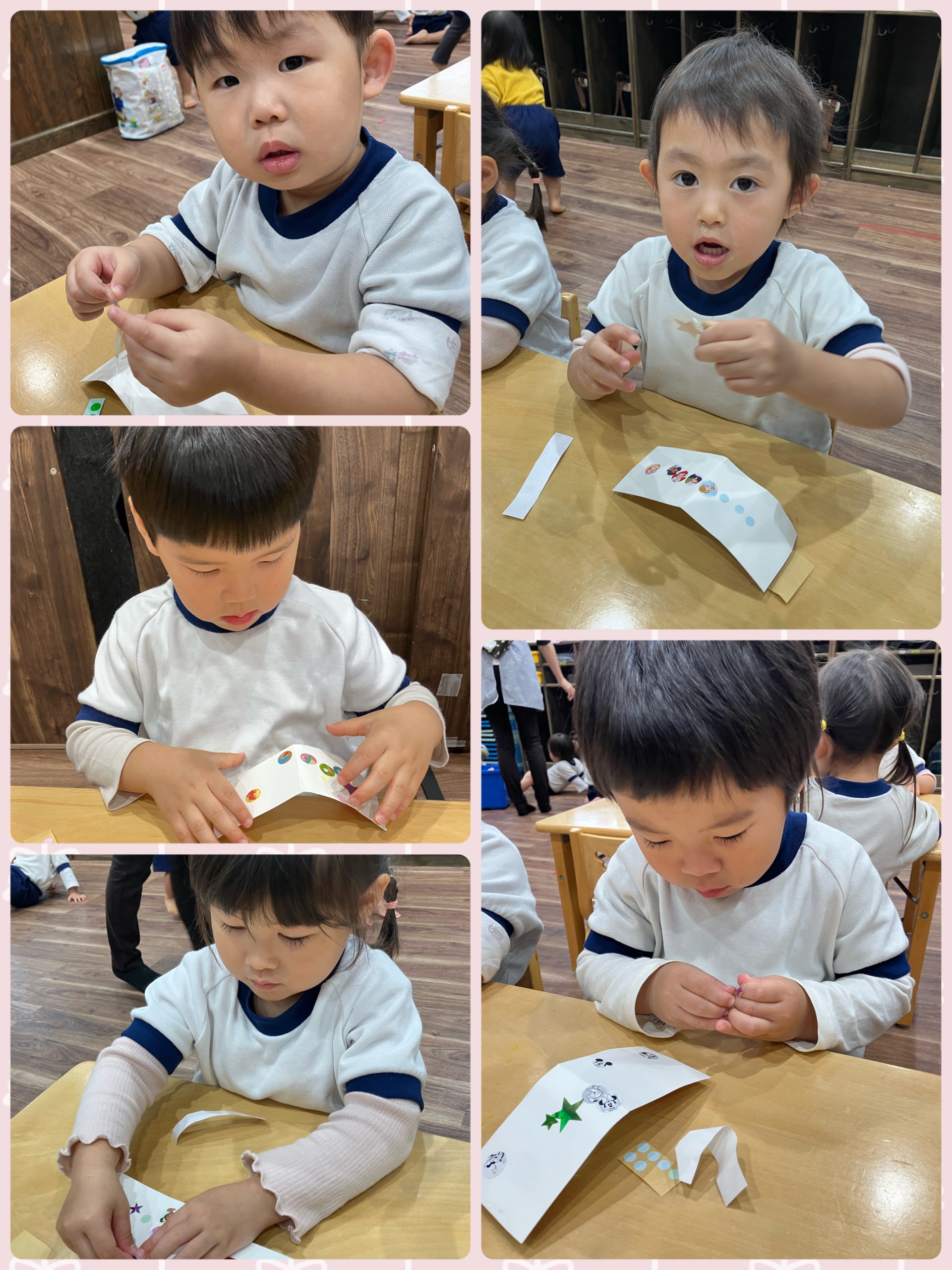 出来上がった後は、カチカチと鳴らしてみたり、音楽に合わせて鳴らしてみたりと、楽しそうに遊ぶ姿が見られました❣️