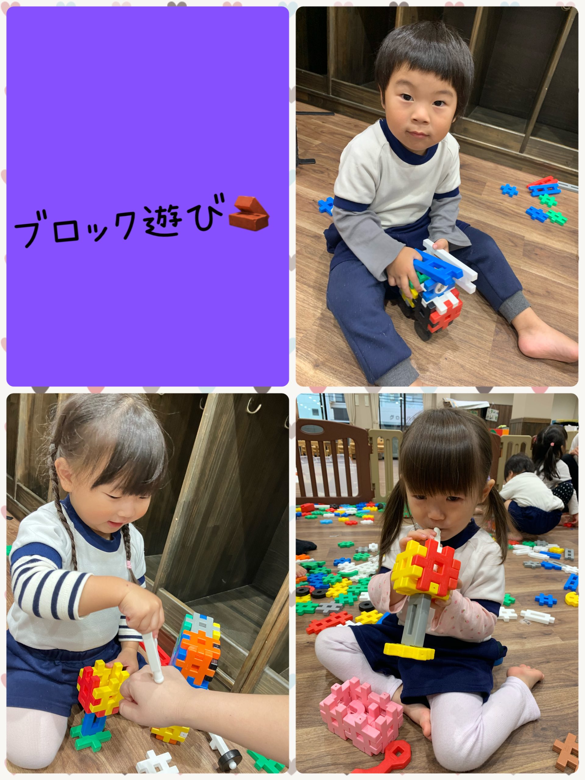 ブロック遊びも上手になってきて、車やグラス、お化粧品まで作って遊ぶお友だちも☺️