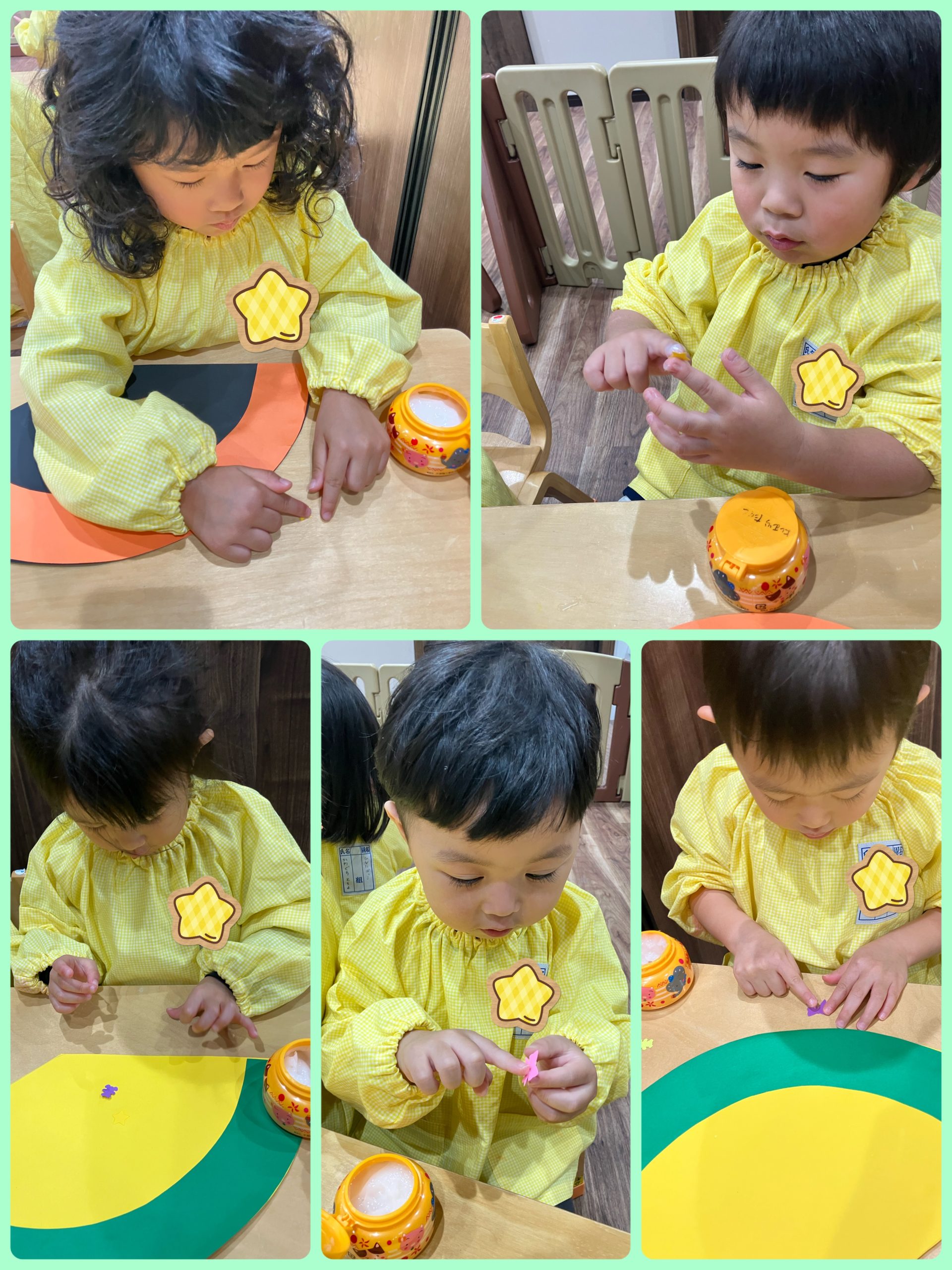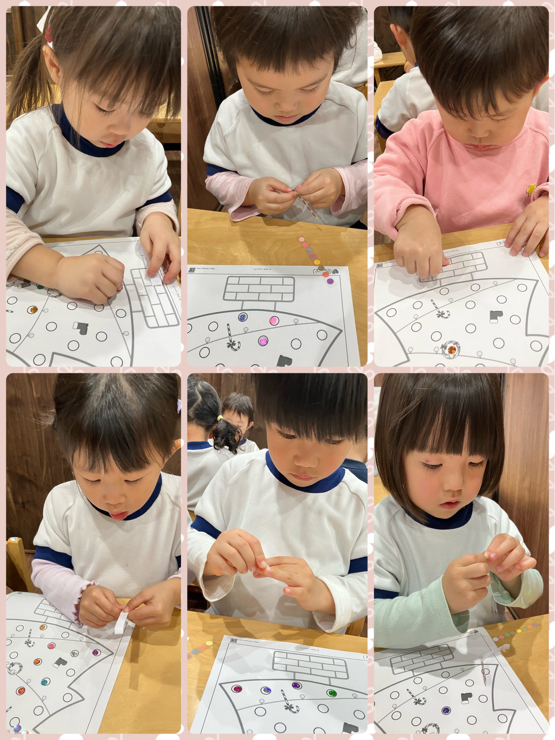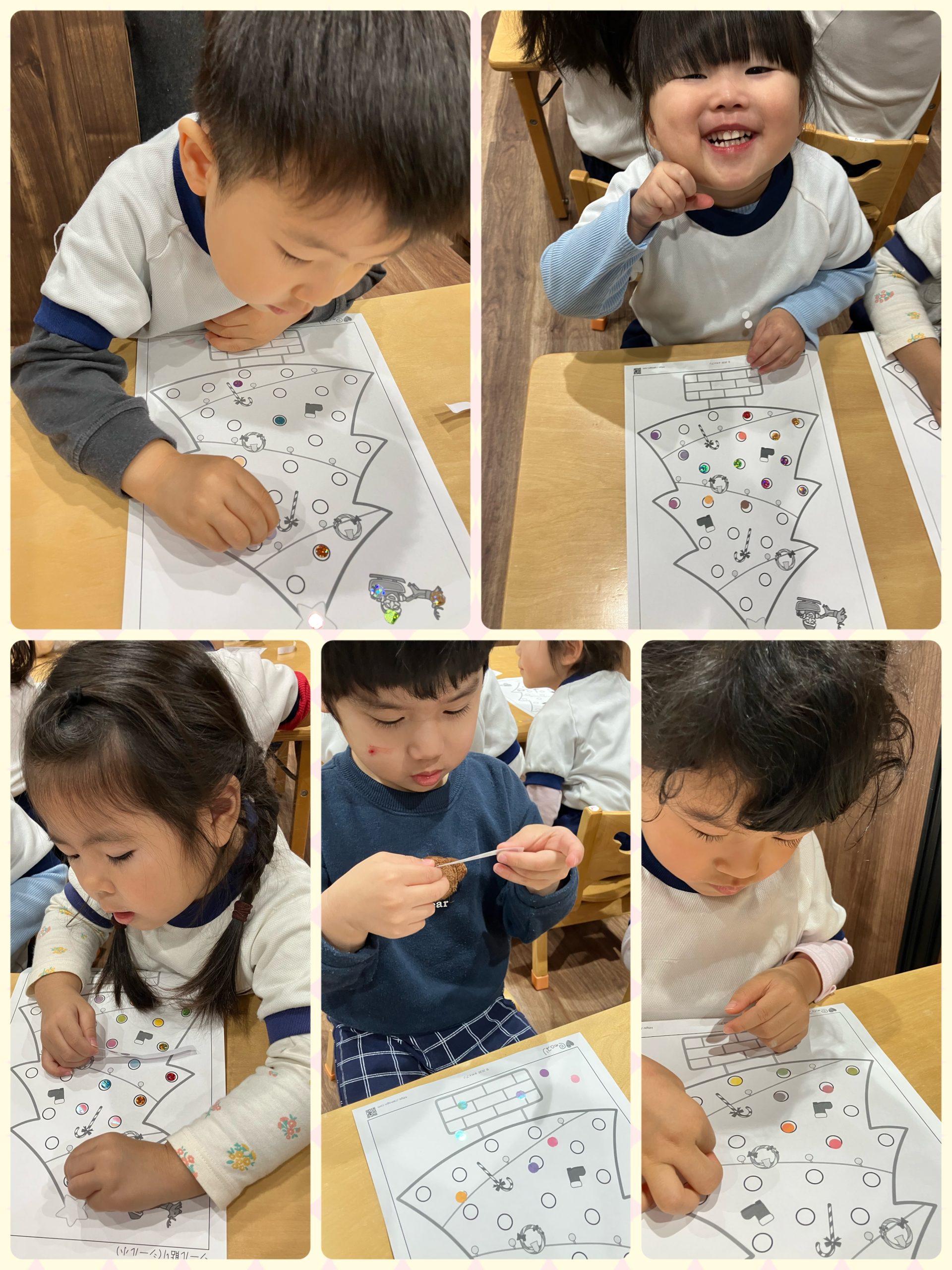 「リボンかわいいね〜🎀」「星もあるー!」などとお友だち同士で会話を弾ませながら取り組んでいましたよ❣️