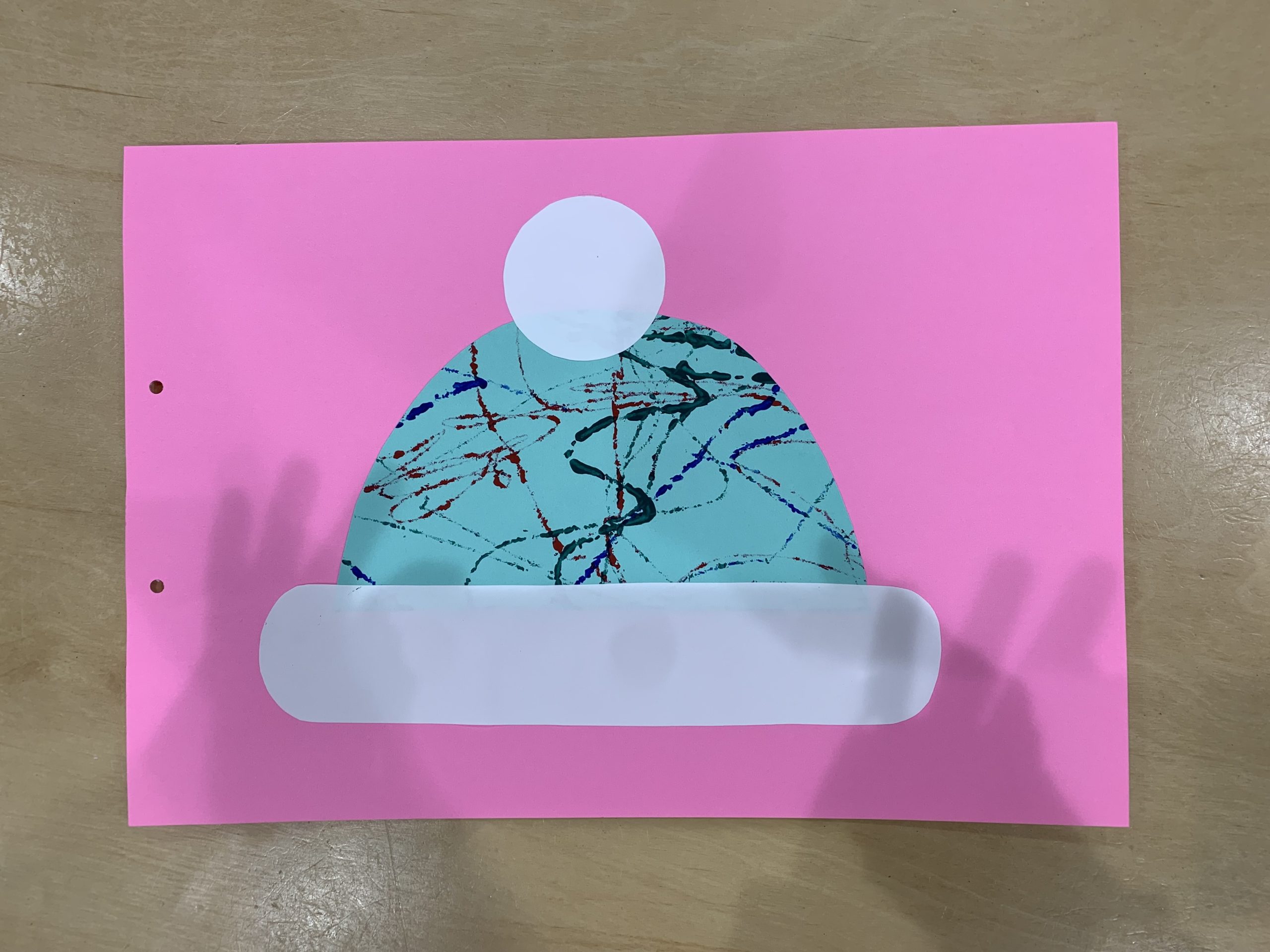 1月の製作で、絵の具をつけたビー玉を転がし画用紙に模様をつけました🎨