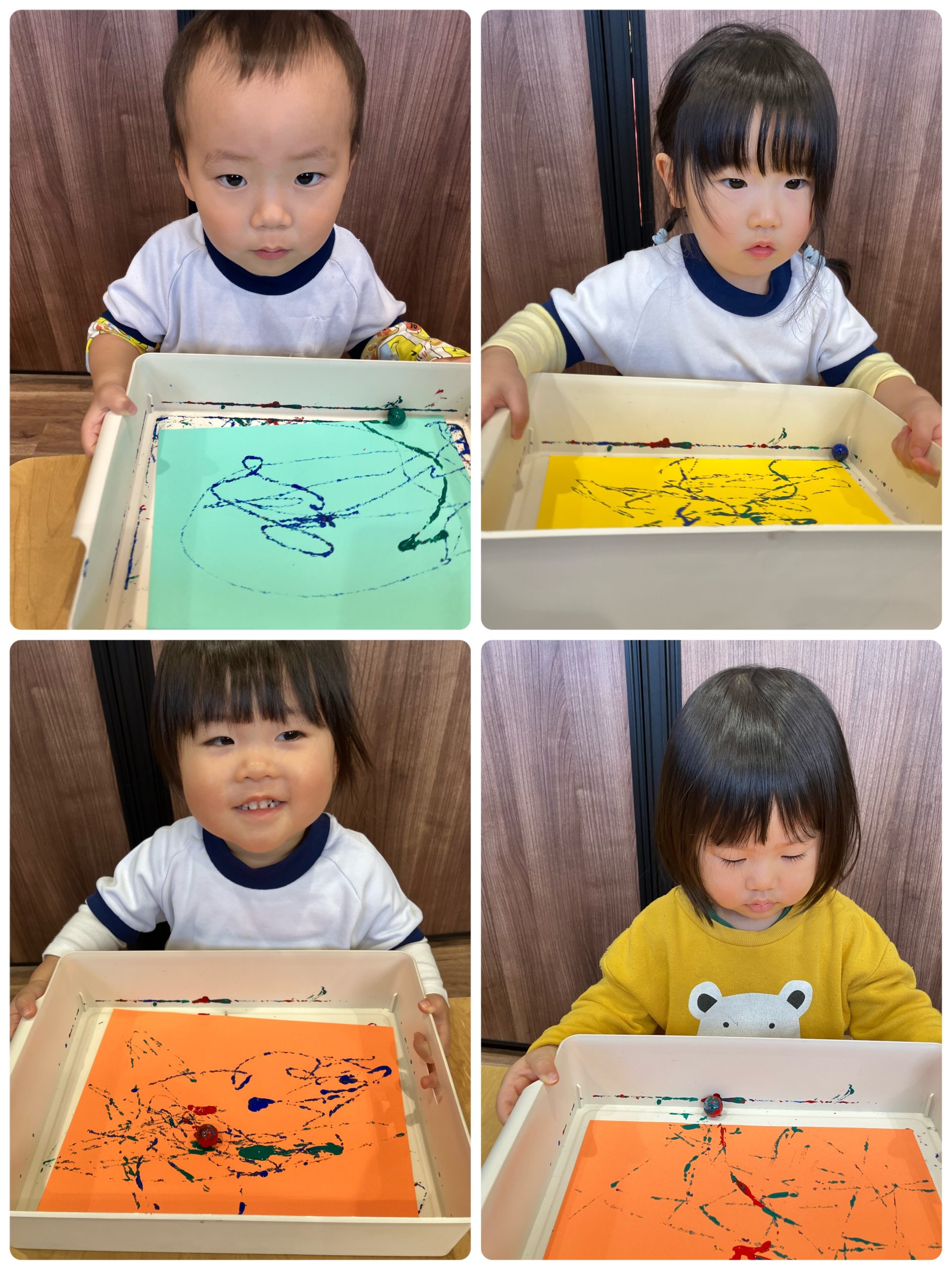 ゆき組さんのお友だちは、自分で箱を動かしビー玉を転がしていました✨