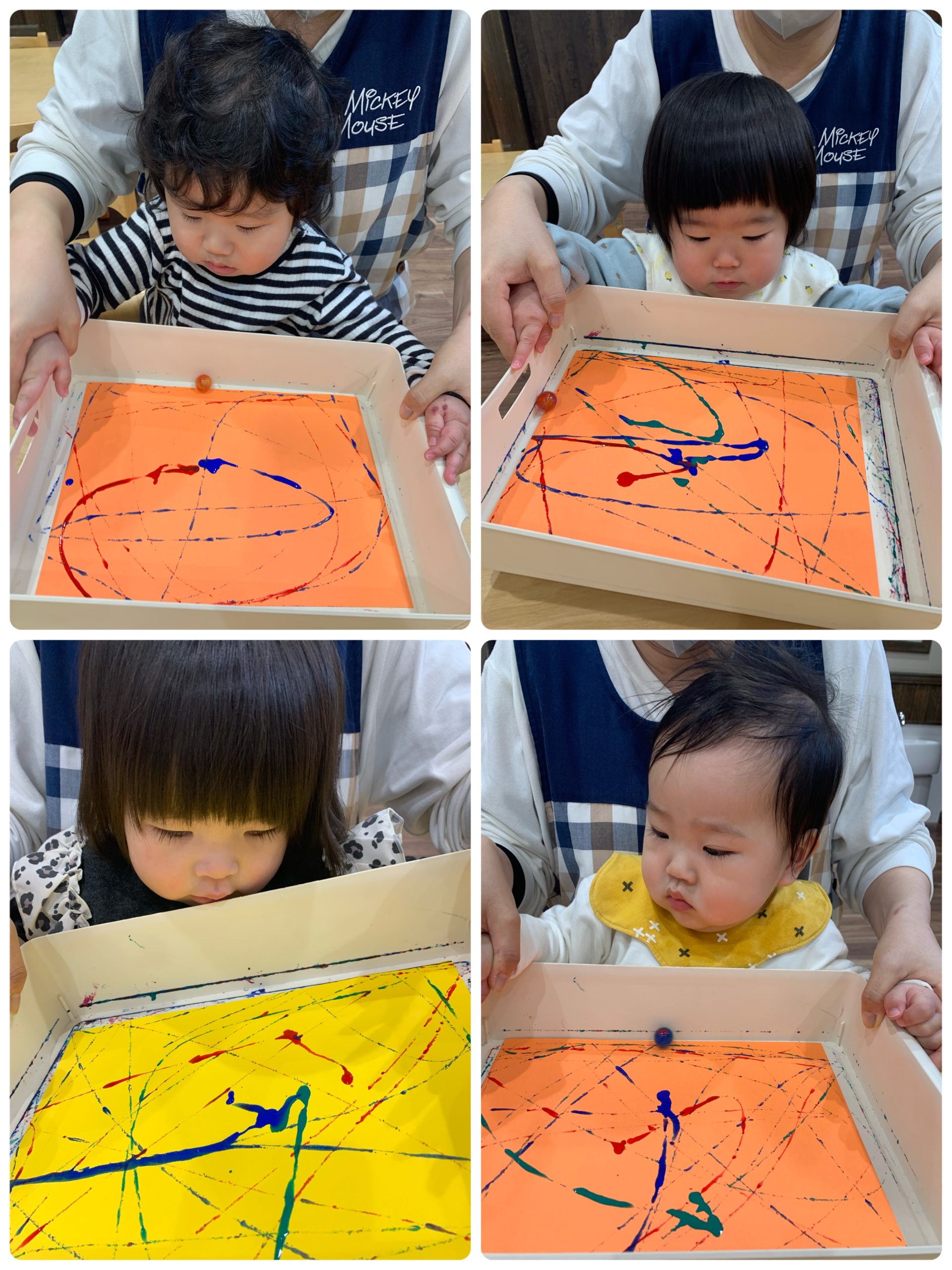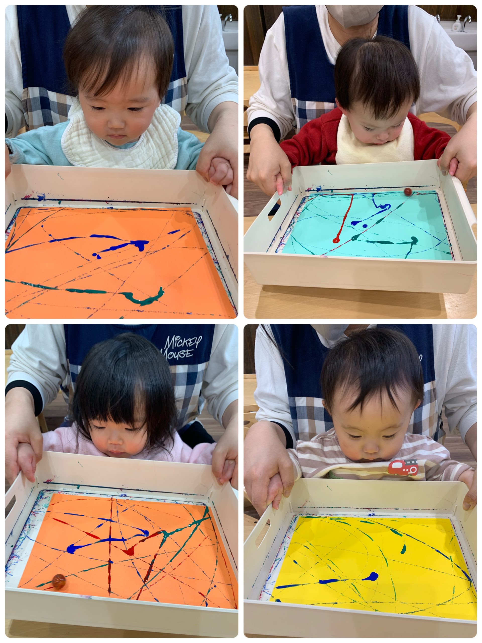 絵の具の動きを目で追っているお友だち💕
