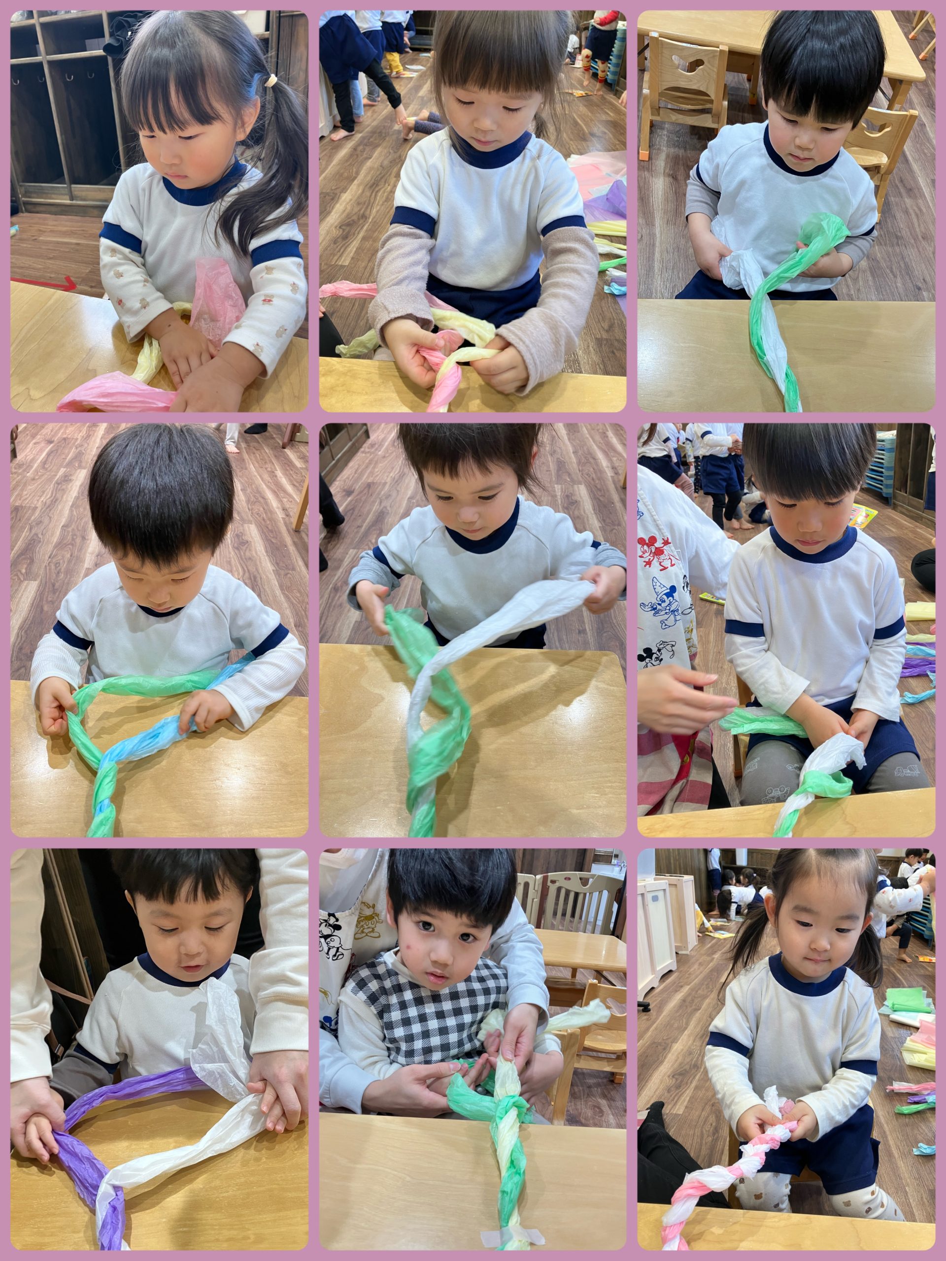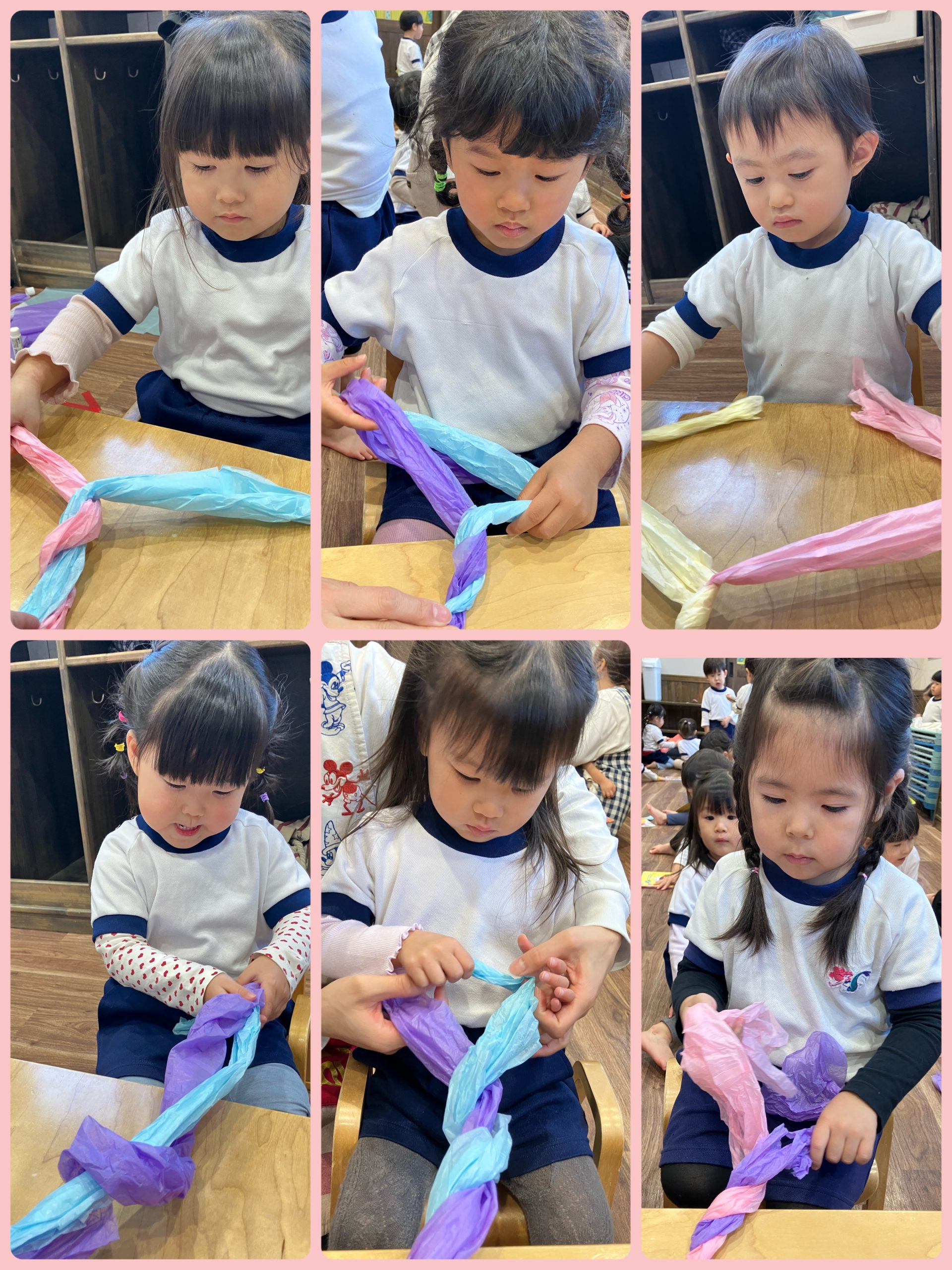 今回は、花紙を長く繋げたものを“ねじる”ということに挑戦💪