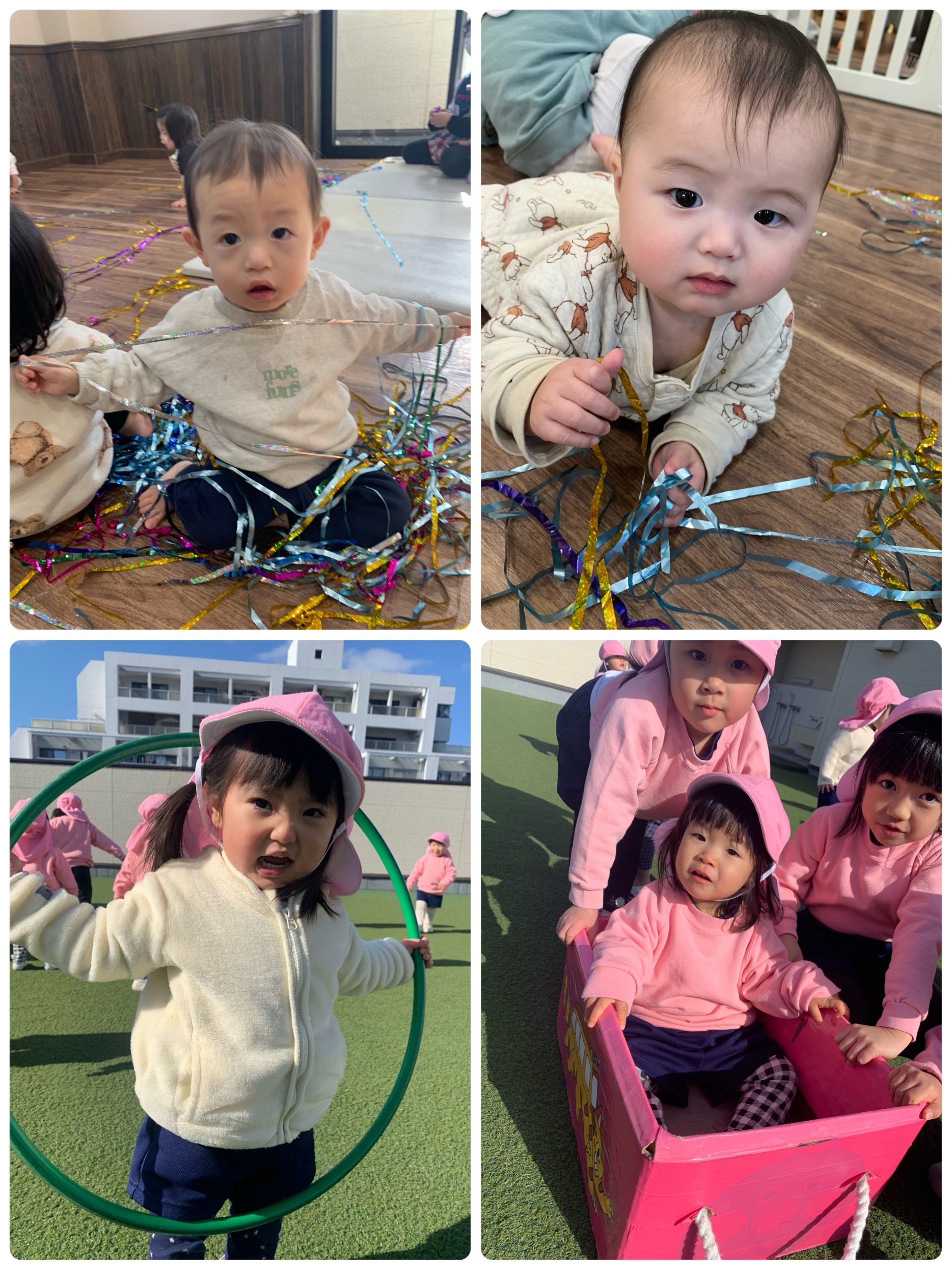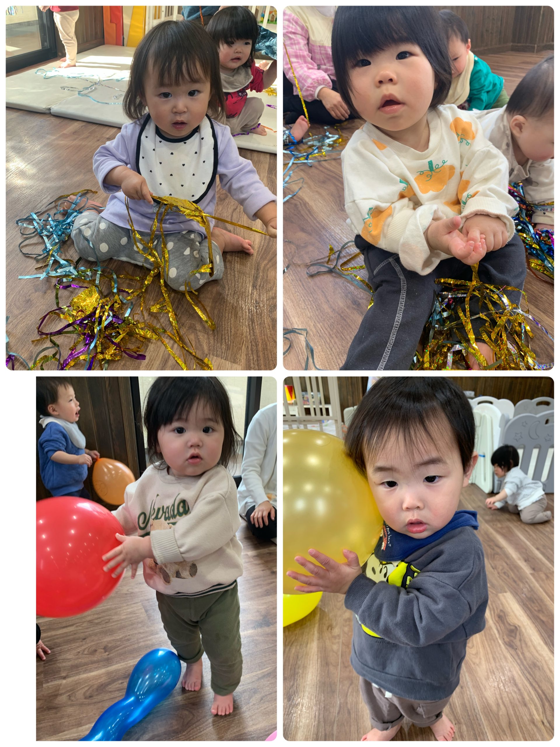 お友だちは、キラキラテープ遊びや風船遊びなどを楽しみ、お部屋でも元気に過ごしています✨
