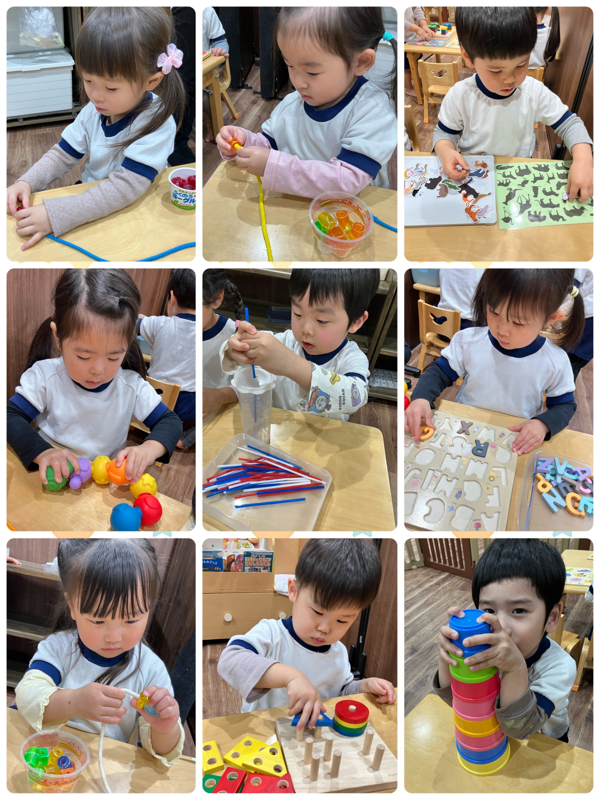 先日から、進級に向けてお兄さんお姉さんの使っているおもちゃに、少しずつ触れていこうということで、2つのおもちゃを取り入れました🧸