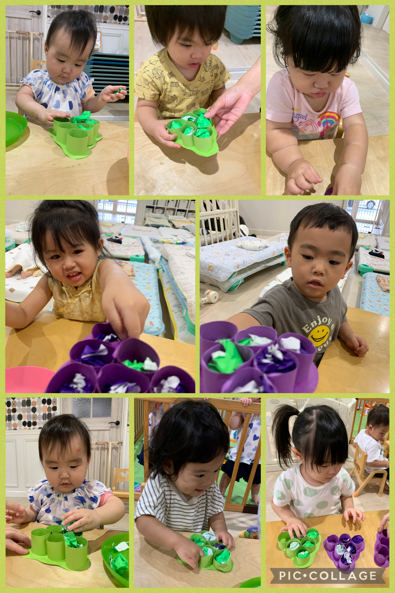 色を分けて入れるお友達や混ぜて入れるお友達など、それぞれこだわって素敵なブドウが完成しました🍇✨