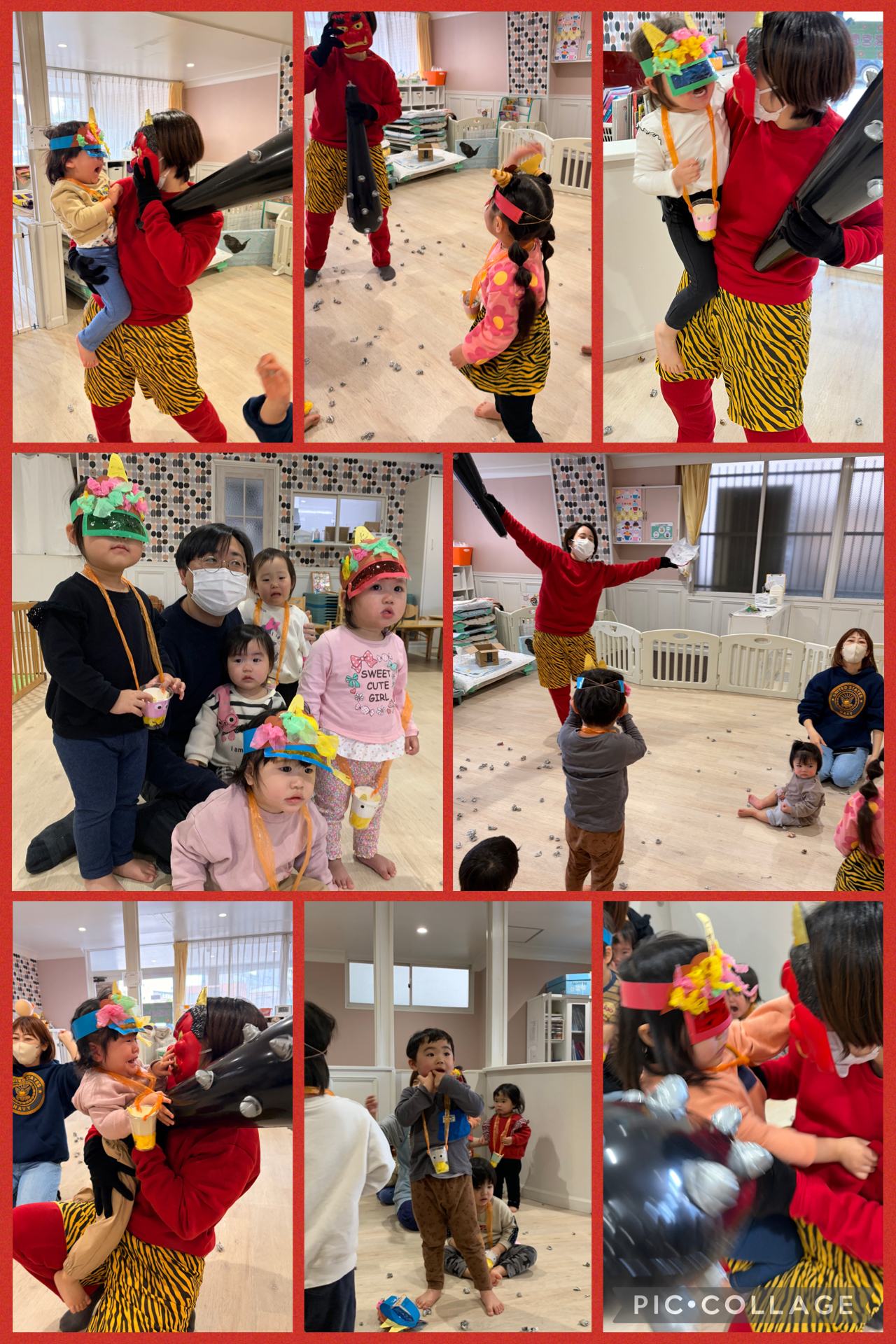 2月3日は節分!ということで、豆まきのイラストの台紙にシール貼りをしました⭐️
