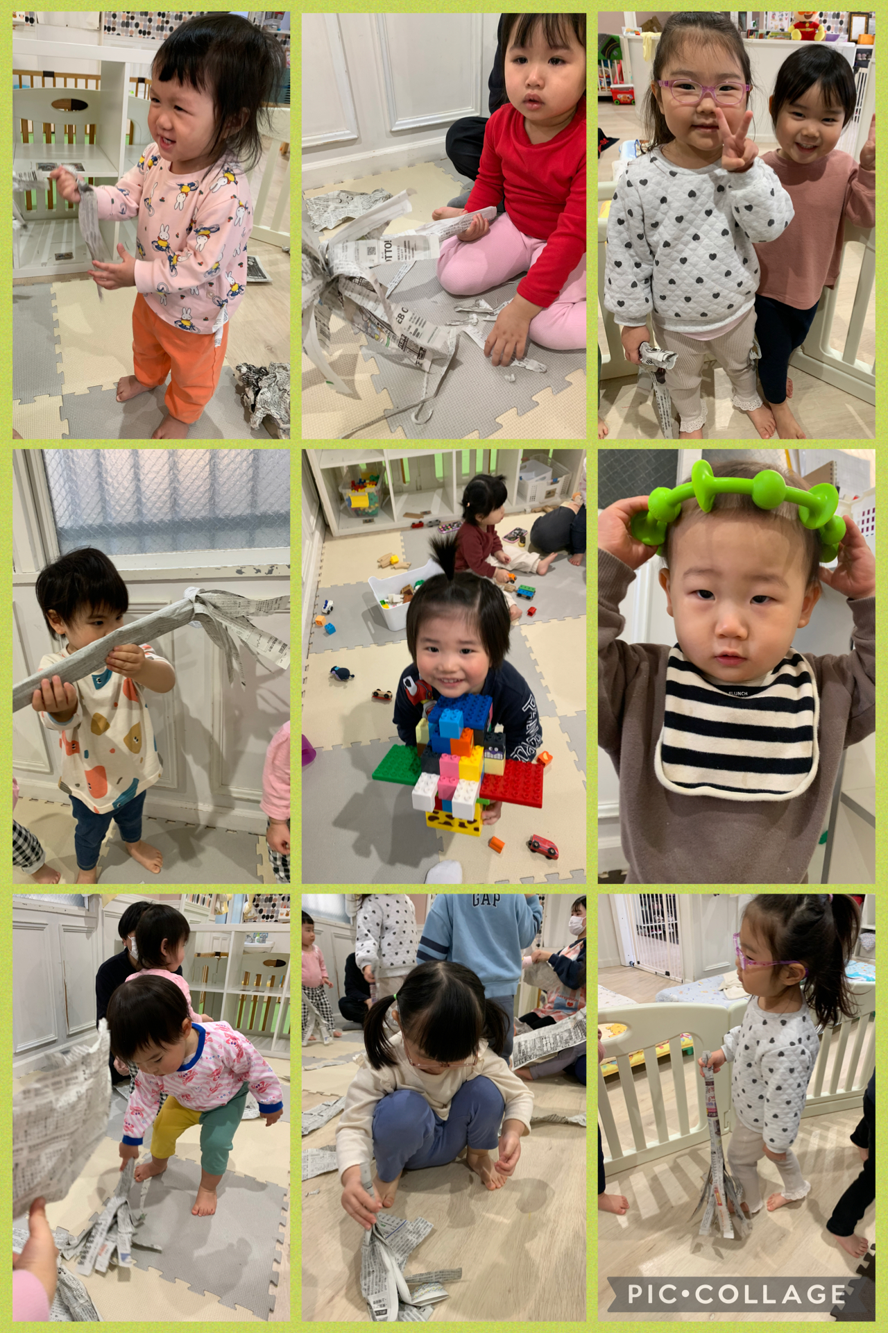 新聞紙遊びやブロックなど、お部屋遊びを満喫した1週間でした❣️