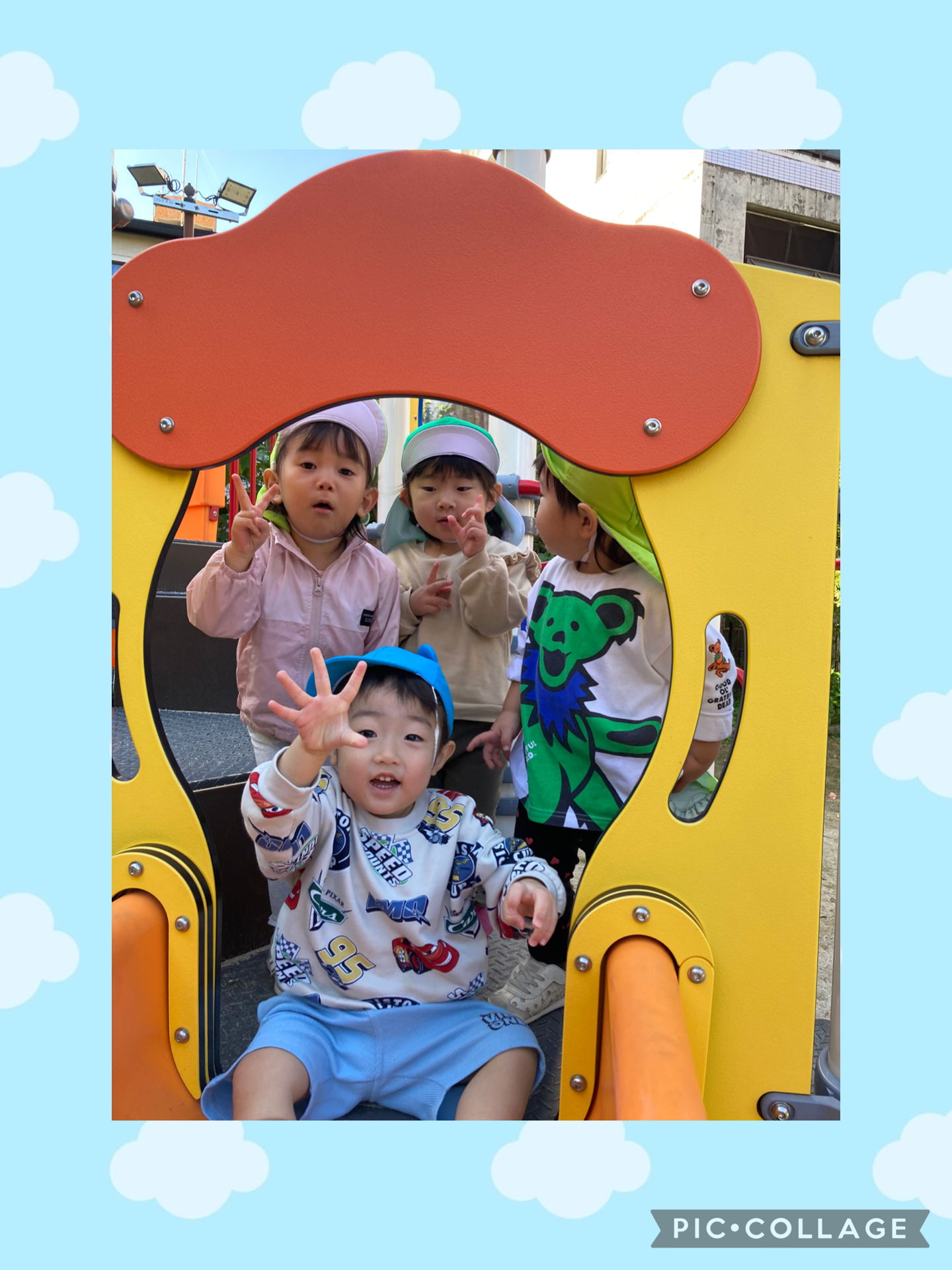 滑り台を見つけるとみんな真っ先に階段を登り滑り台を楽しんでいましたよ😊🩷