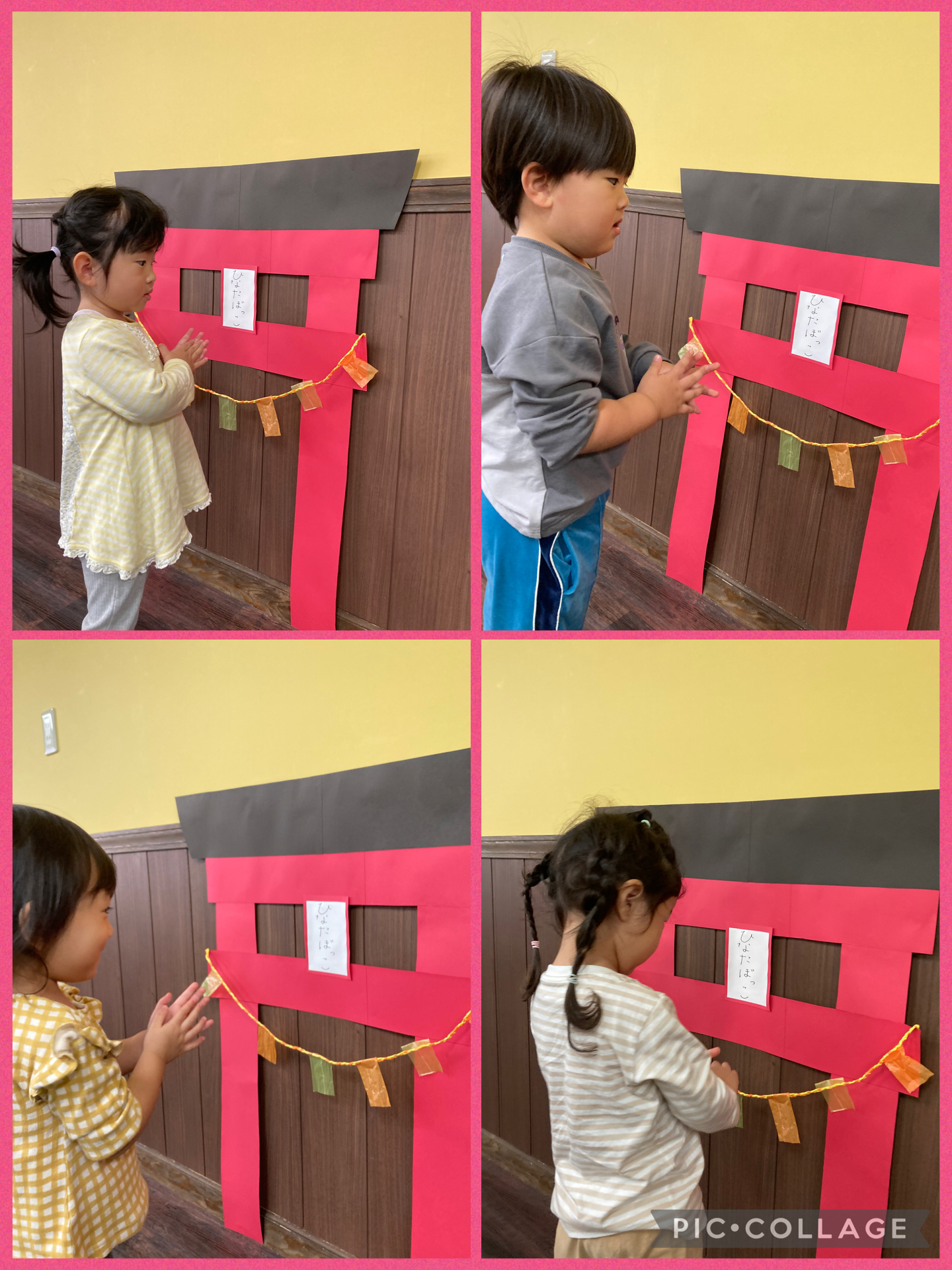 お部屋に作られたひなたぼっこ神社にみんなでお参りをしました😊✨