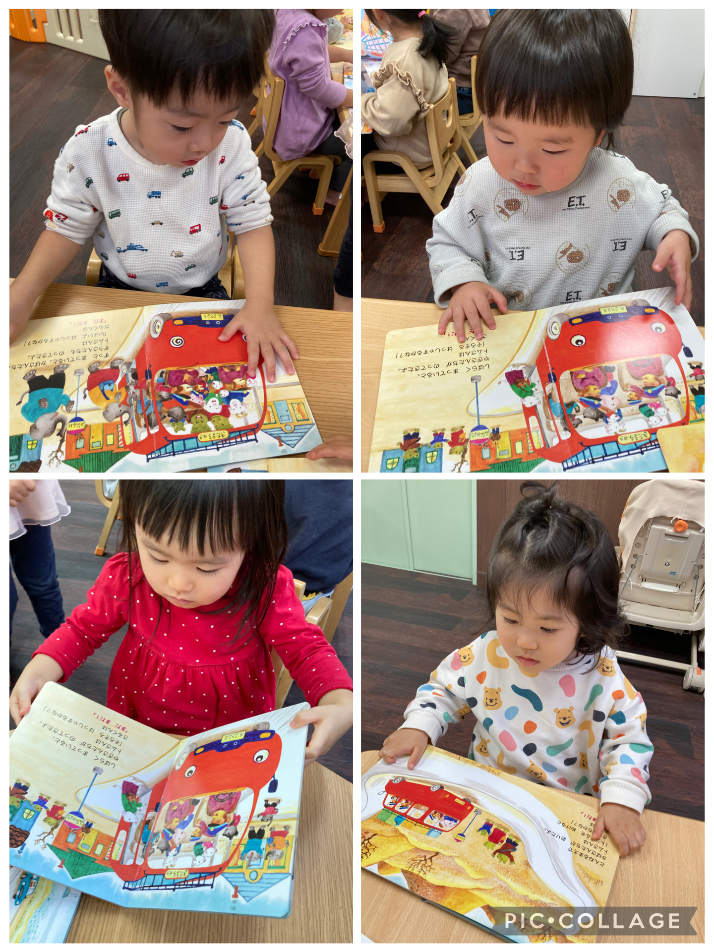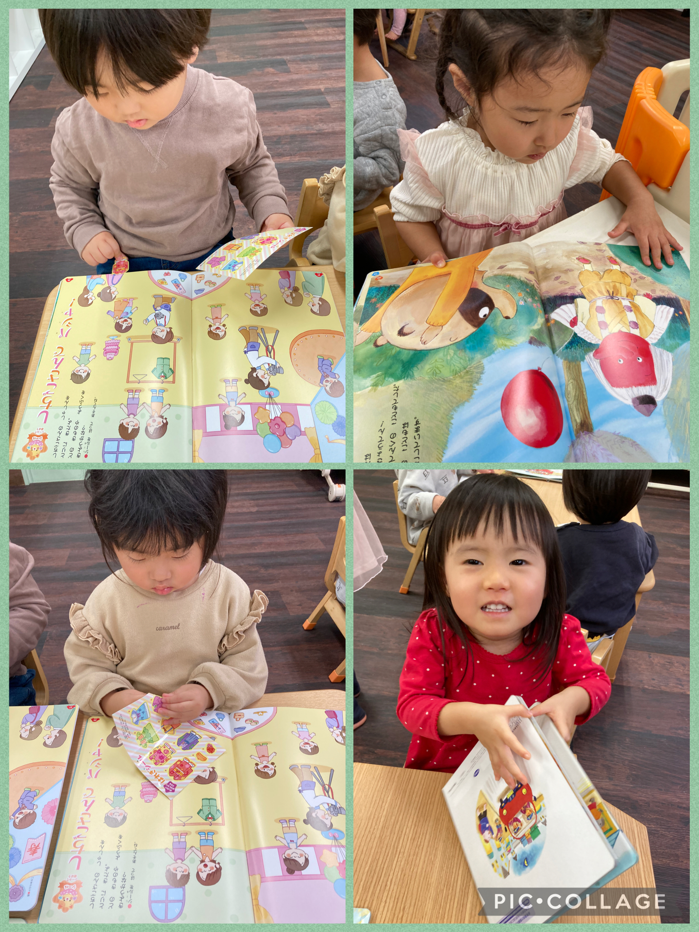 2歳児さんも新しい絵本に出会いました🌟七五三のイラストのシールでとっても上手に貼り付けることができていました‼️