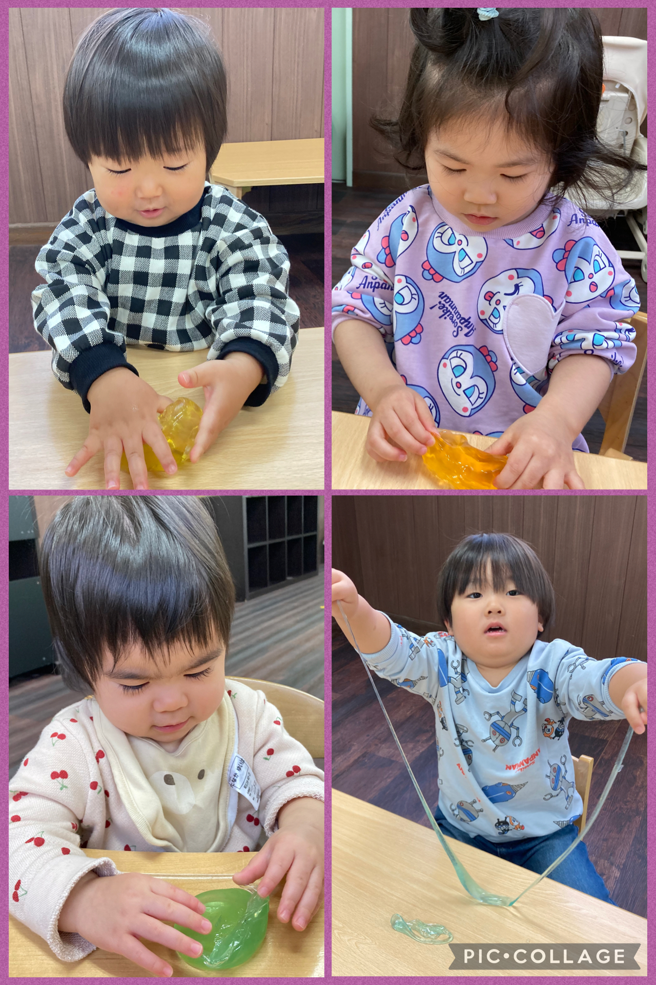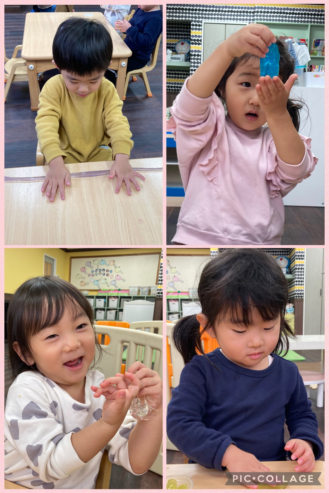 子どもたちが大好きなスライムを出して遊んだ日の様子です!
